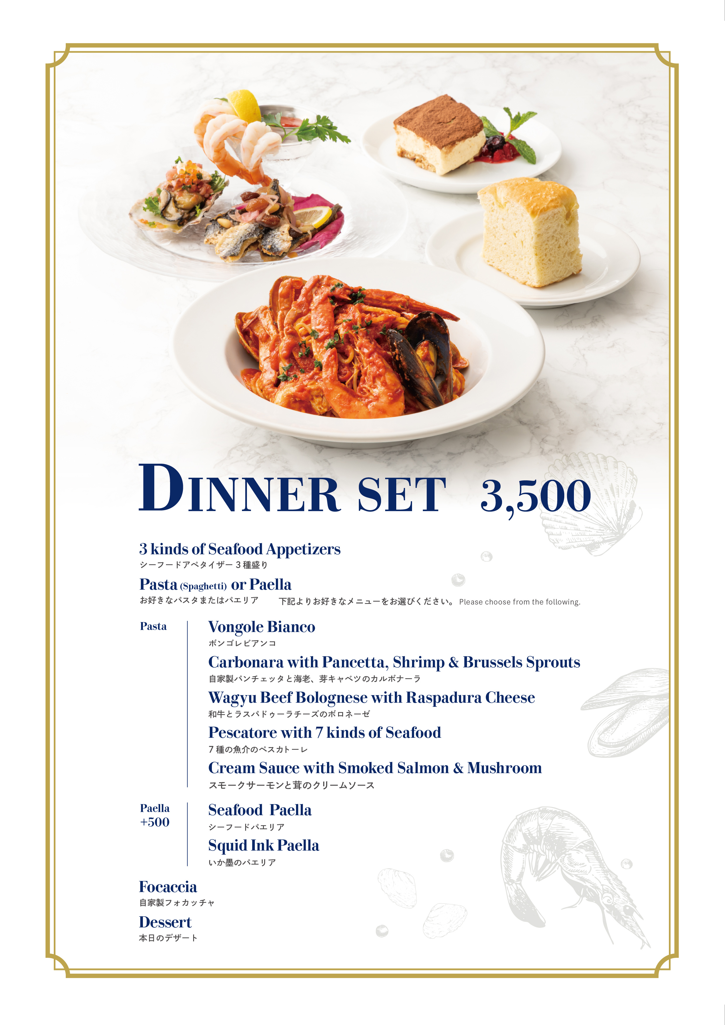 バラエティ豊かな「シーフード・メニュー」をお楽しみいただけます。